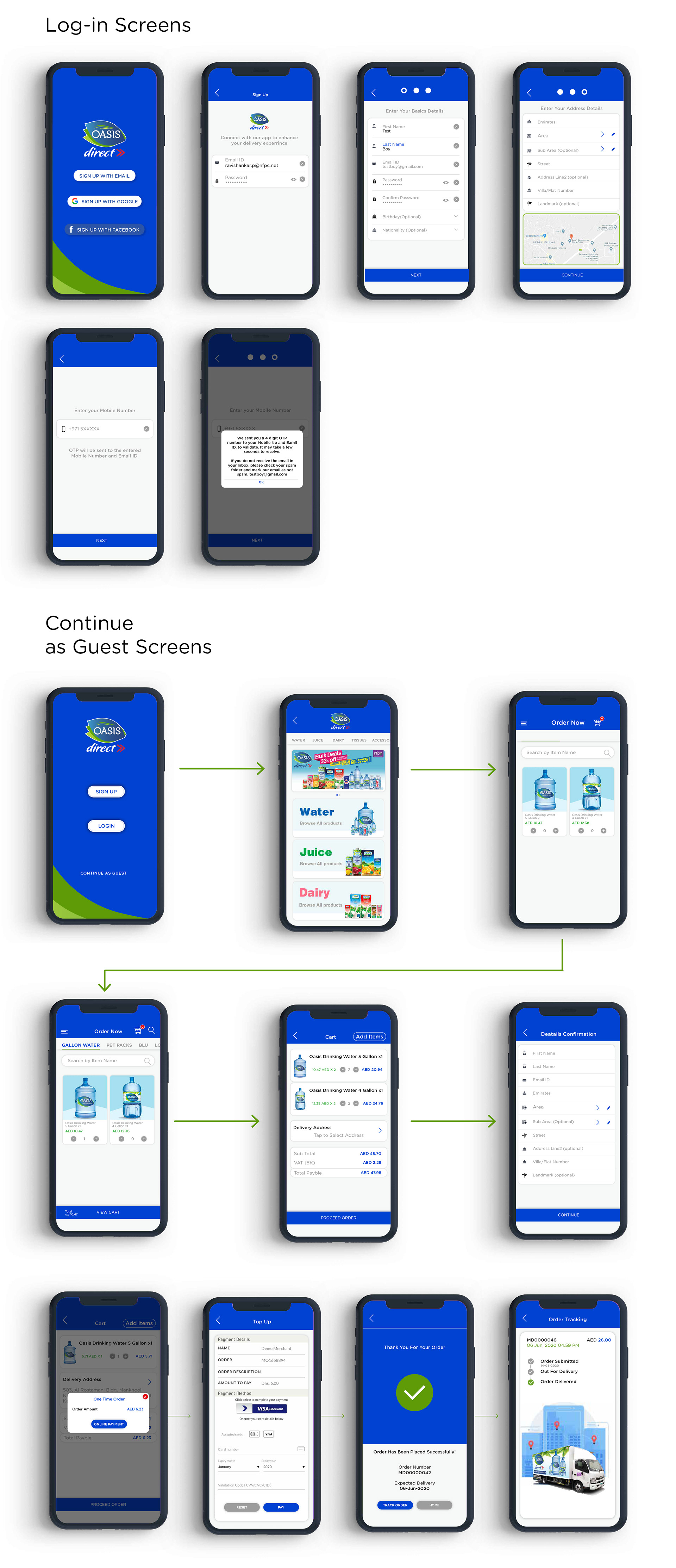OASIS Direct Mobile app design